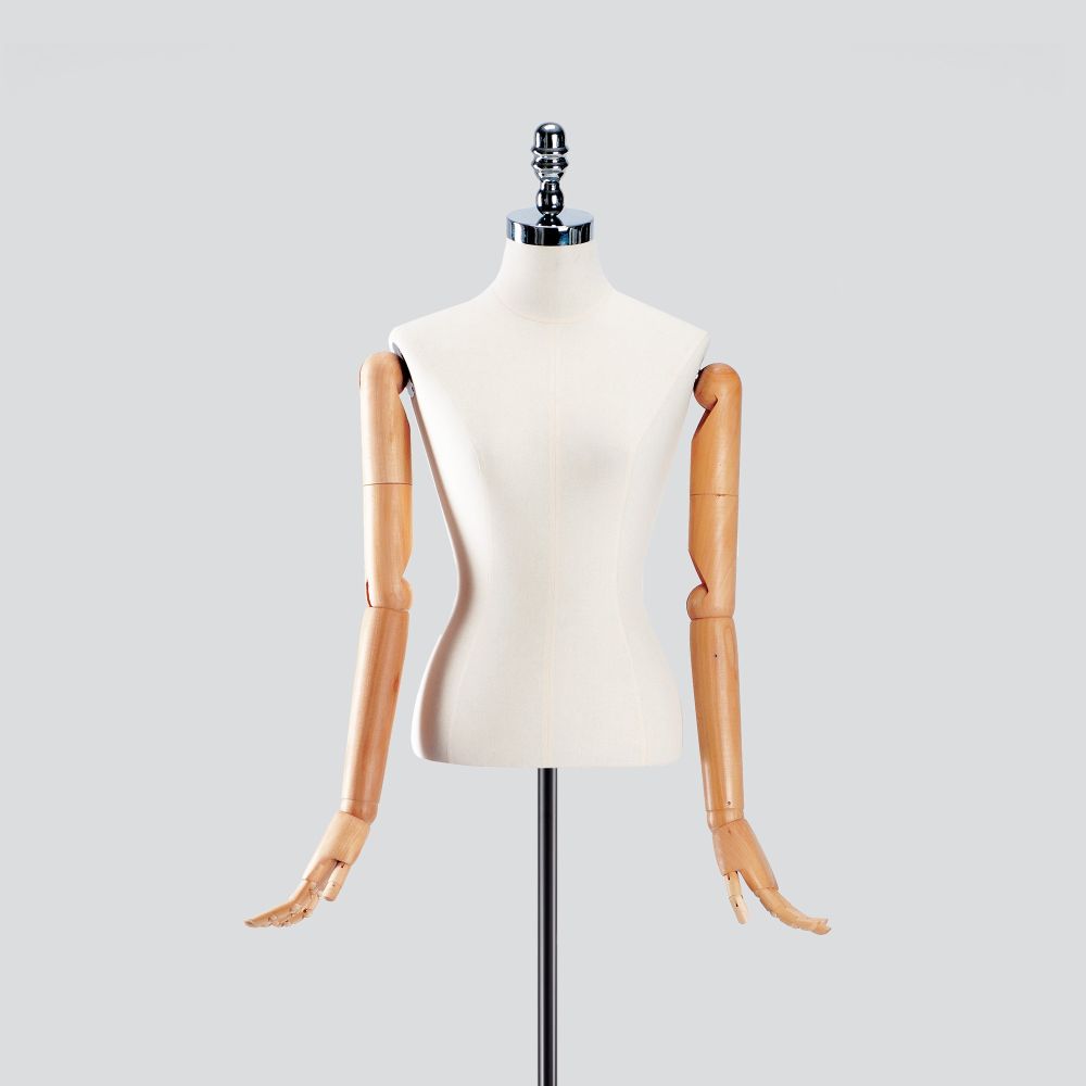 Le mannequin pour dames avec des mains en bois est un choix idéal pour les boutiques et les concept stores qui se soucient d'une décoration intérieure et de présentoirs accrocheurs. La haute qualité des matériaux utilisés pour fabriquer le torse du mannequin à mains mobiles en fait un présentoir très résistant à toutes sortes de dommages. Il constituera donc une décoration exceptionnelle pour votre boutique pendant de nombreuses années.