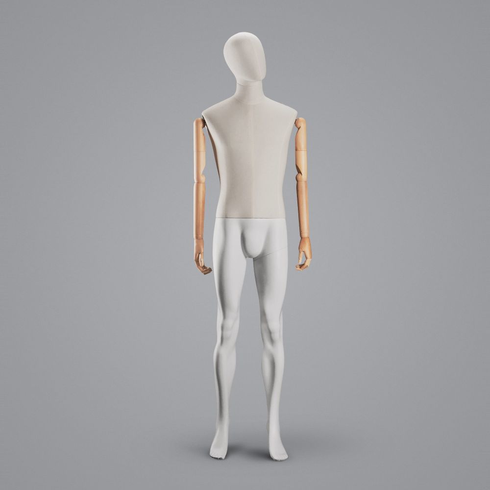 La silhouette masculine de ce mannequin composé de différents matériaux incarne à la fois le style vintage et l'innovation du 21e siècle. Il est basé sur une histoire tirée d'anciens ateliers de couture. La couleur claire vous permet de placer le mannequin dans des intérieurs sombres, où il se reflétera et aura donc un aspect encore plus phénoménal. Dans un cadre lumineux, vous mettrez en valeur ses atouts indéniables. Le fait d'être fabriqué à partir de matériaux naturels est une déclaration ferme sur le respect de la nature.