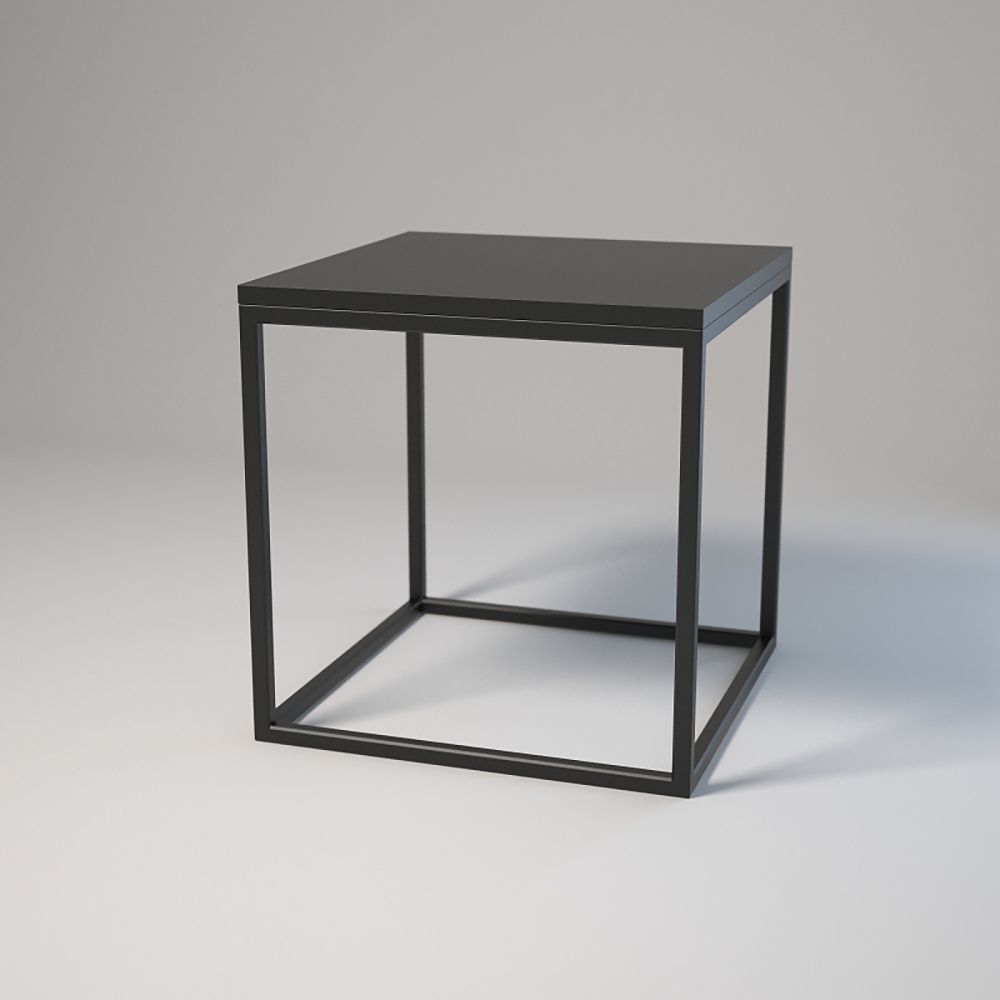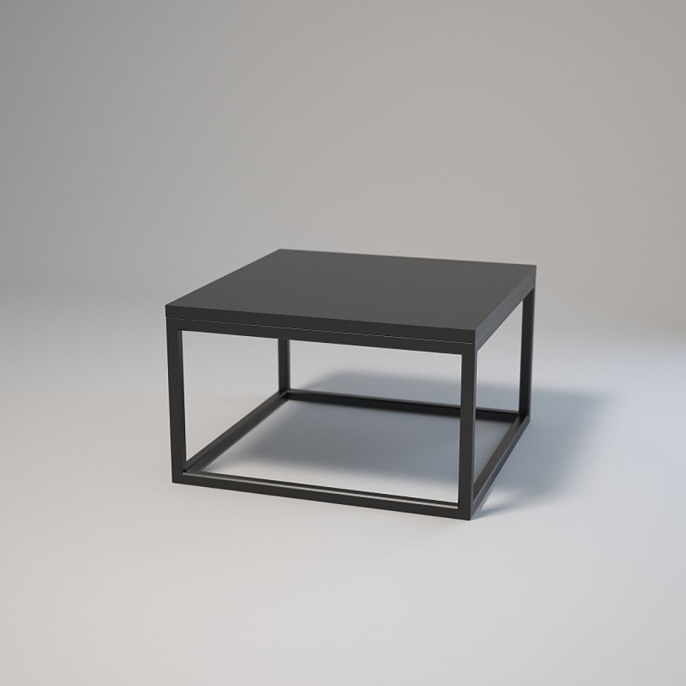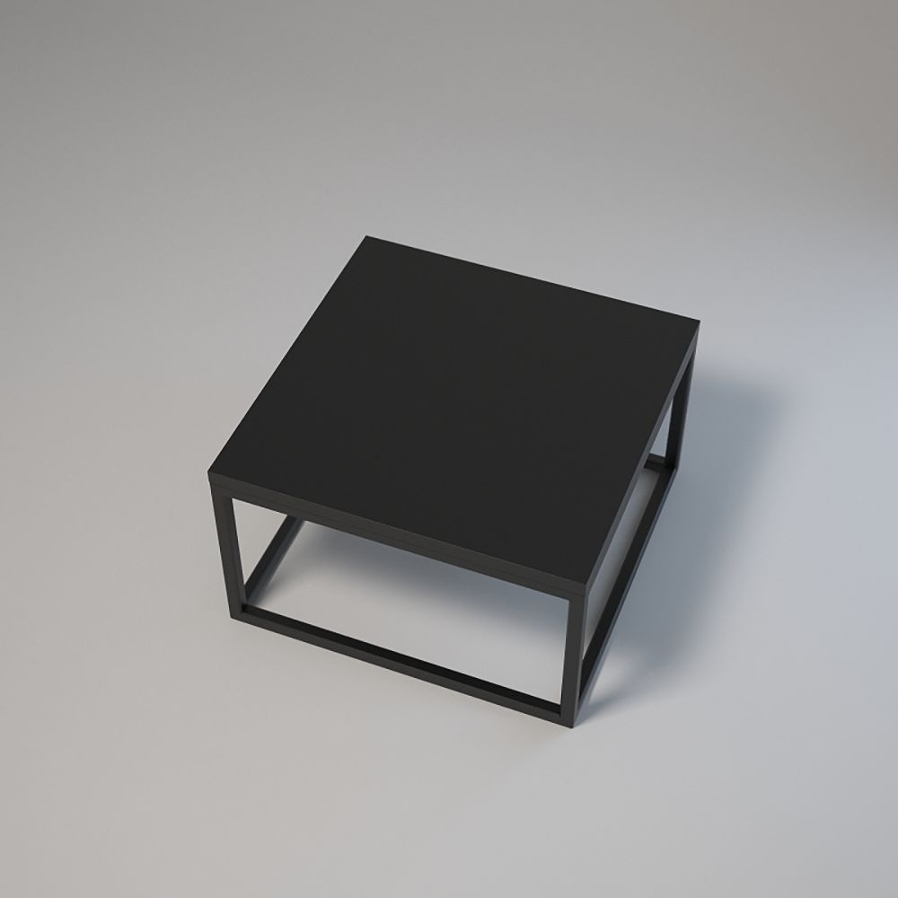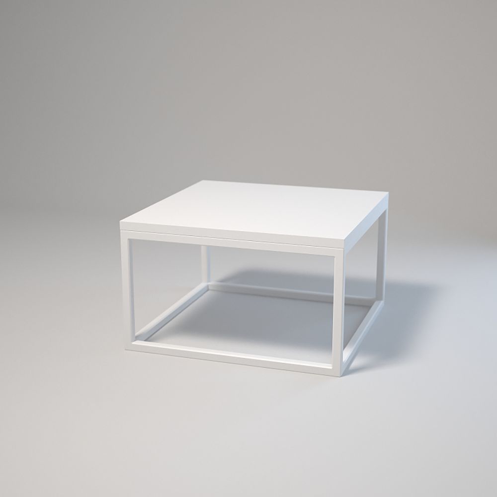 Dimensions : 50x50 cm, hauteur : 30 cm. Acier thermolaqué 20x20x1,5 mm. Plateau stratifié avec chant. Montage avec vis et douilles. Pieds réglables. Couleurs : blanc ou noir.