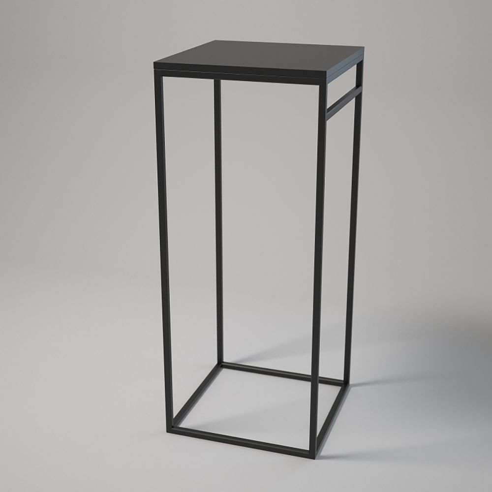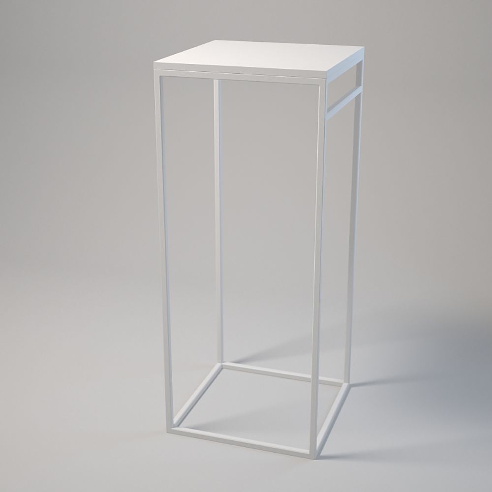 Plateau 50x50 cm, hauteur 120 cm. Structure acier thermolaqué 20x20x1,5 mm. Plateau stratifié avec chant assorti. Pieds réglables. Montage par vis et douilles. Couleurs : blanc ou noir.