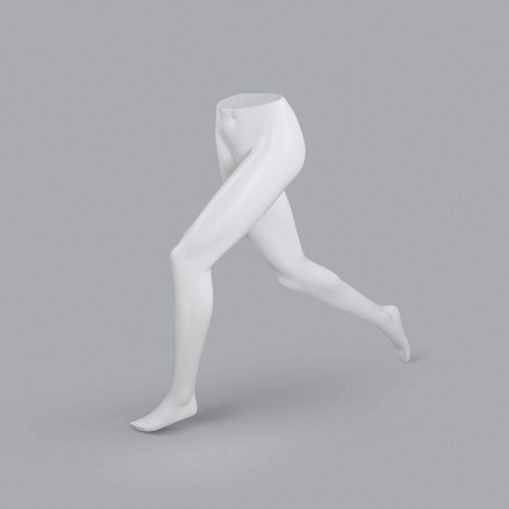 La pose unique des jambes de ce mannequin reflète parfaitement le mouvement d'une femme en pleine course. Sa silhouette athlétique garantit une excellente présentation des vêtements inférieurs pour femmes.