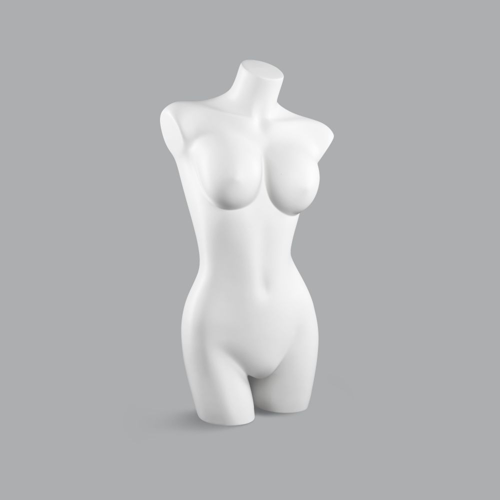 Le mannequin de lingerie a été créé en fibre de verre de haute qualité, résistante aux dommages et aux rayures. Cette durabilité est extrêmement importante dans un magasin de lingerie, qui change de vitrine beaucoup plus souvent que d'autres secteurs d'activité. Le torse féminin proposé ne nécessite pas la commande d'un support supplémentaire.