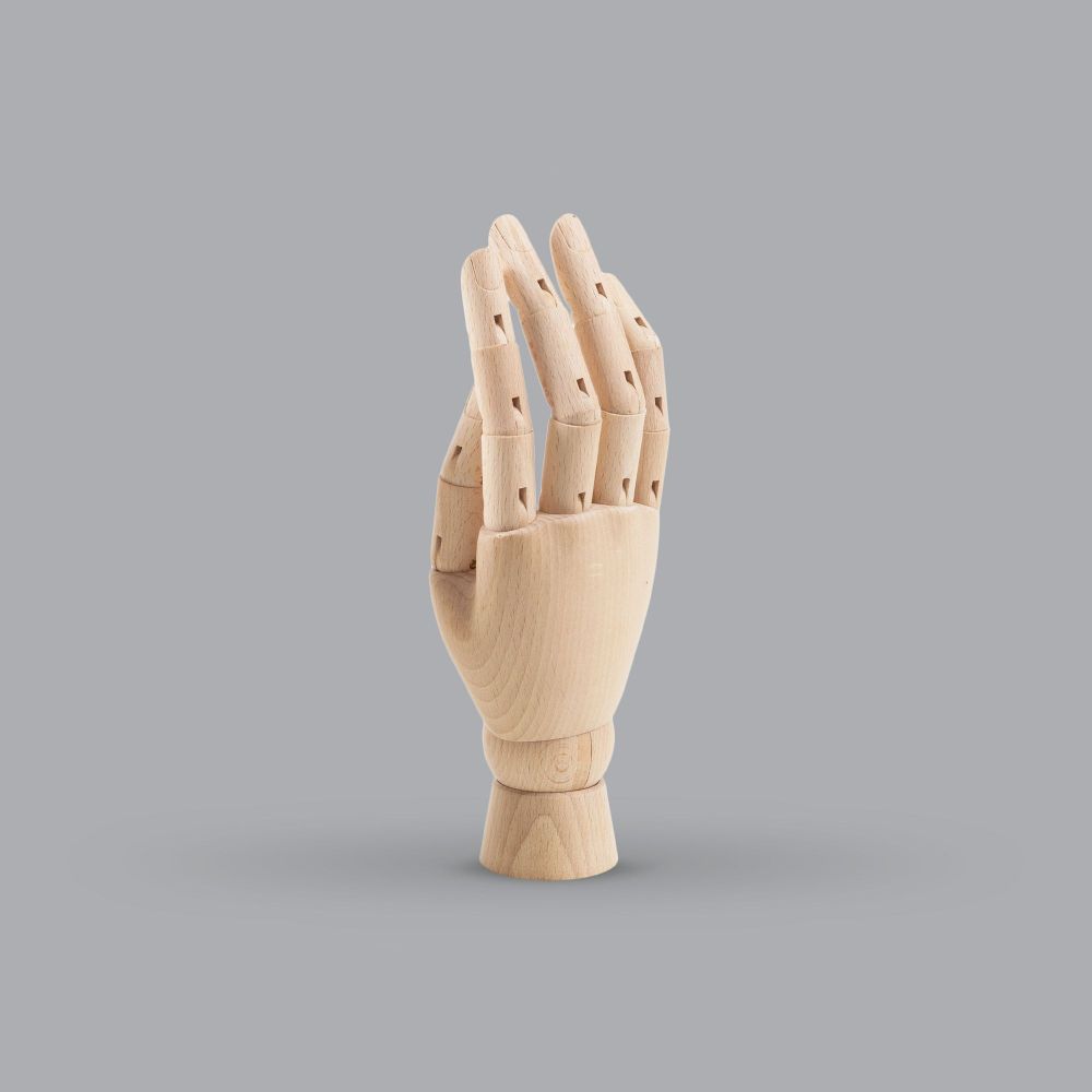 La main en bois pour homme permet un ajustement multidimensionnel avec des doigts mobiles qui peuvent être disposés librement. Vous pouvez l'adapter aux spécificités et au caractère des produits présentés, leur donnant une expression individuelle.